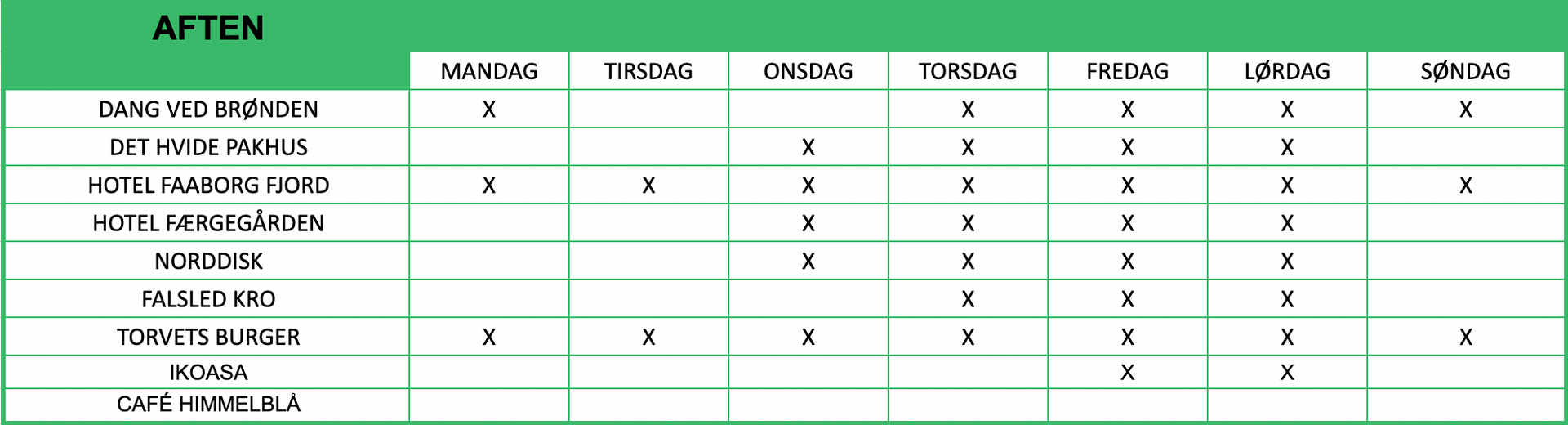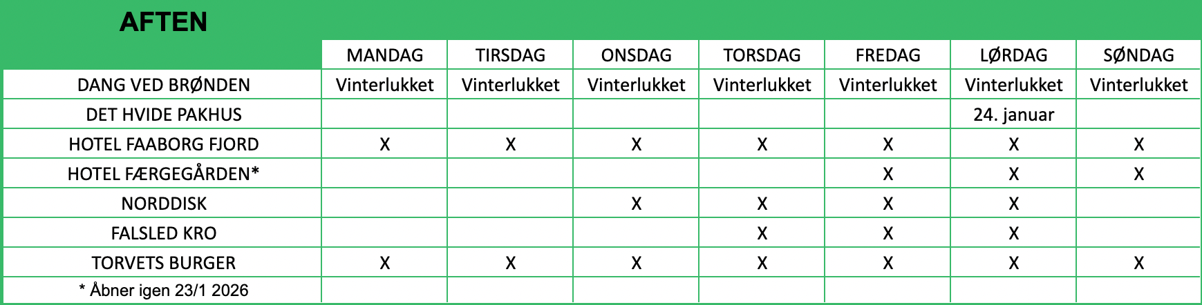 NB: Åbningstiderne er vejledende.
