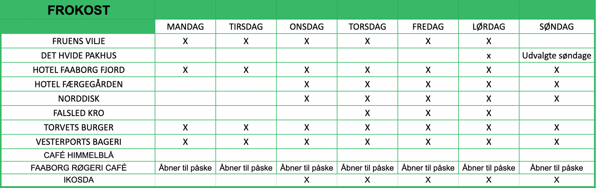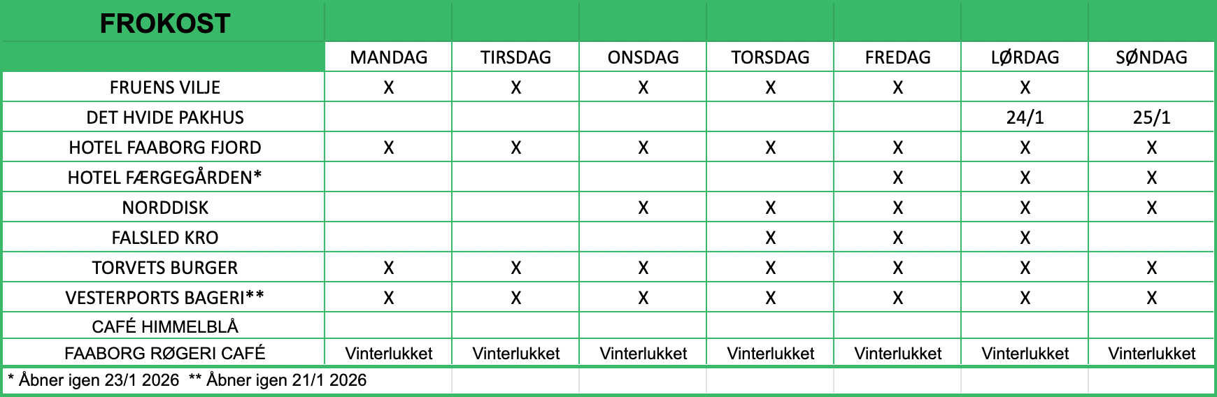 Vi anbefaler, at du tjekker de enkelte restauranters egne hjemmesider for de nyeste oplysninger.