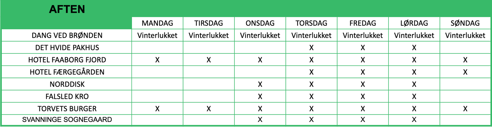 I Faaborg og omegn venter et bredt udvalg af restauranter, caféer, take away-steder og hoteller på at berige din oplevelse. Uanset om du er turist eller lokal, kan vi varmt anbefale at kombinere din shopping- eller hyggetur med de lækre kulinariske muligheder, som området byder på. Faaborg har noget for enhver smag, lige fra hyggelige caféer til raffinerede restauranter og praktisk take away. Udforsk det lokale gastronomiske landskab og gør din dag endnu mere mindeværdig. Vi er sikre på, at du vil finde noget, der tiltaler dine smagsløg.
